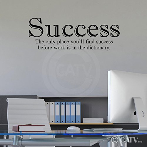 Success the Only Place You'll Find Success Before Work is In the Dictionary Vinyl Lettering Wall Decal Sticker (12.5"H x 35"L, Black)