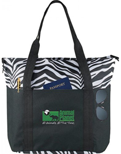 -. Feature : Zebra Poly Zippered Tote Bag / Material - 600D polyester w/heavy vinyl backing / Size - 20 W x 16 H x 6 D in. / Color - Zebra / Case of 48