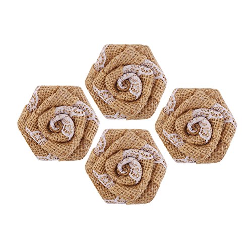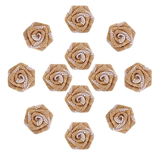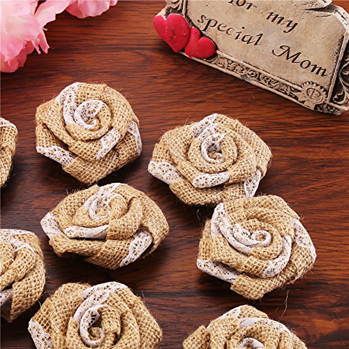 DECORA 12 Pieces Burlap Rose Flowers for Wedding Decoration DIY Craft