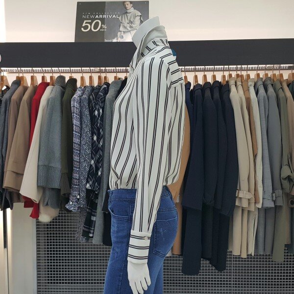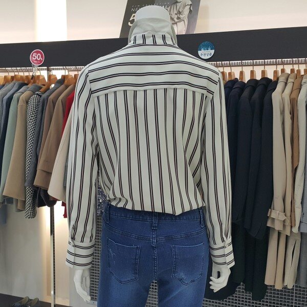 깔끔한 스트라이프 패턴이캐주얼하며 고급소재의세련된 스트라이프 블라우스입니다다양한 아이템으로 연출해 보세요~
