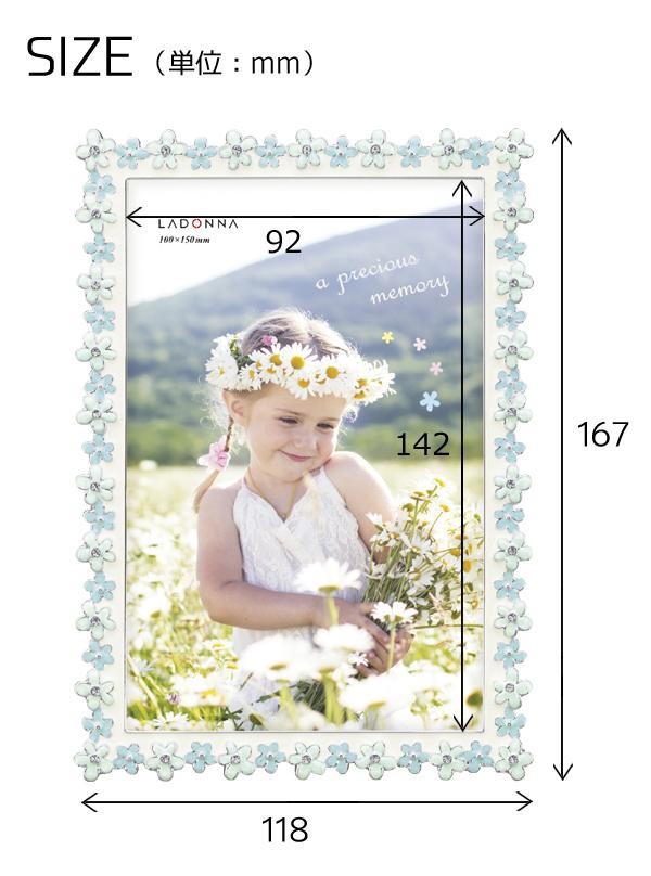 | 小さなお花の縁取りがかわいらしいフォトフレームです。結婚祝いの贈り物としてもオススメです。 |