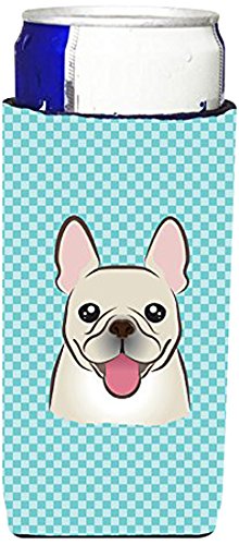 Checkerboard Blue French Bulldog Ultra Beverage Insulators for slim cans BB1176MUK