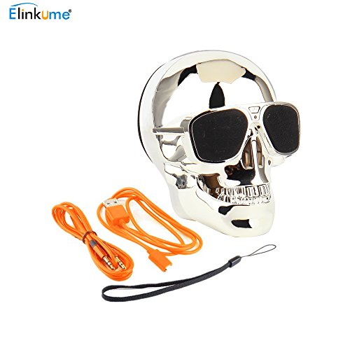 ELINKUME Schadel Lautsprecher, Drahtloser Bluetooth Stereo Tragbare Speaker fur Ios Android Smartphone Tablet PC Computer Netbook