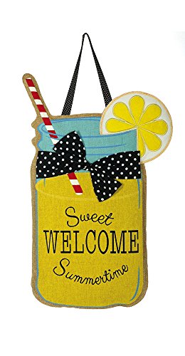 Evergreen Welcome Sweet Summertime Lemonade Hanging Outdoor-Safe Burlap Door Décor - 13”W x 22”H