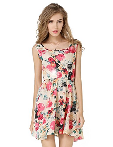 원본상품명: Legou(ラッコウ) レディ?ス バラ 花柄 膝上 袖なし シフォン ドレス