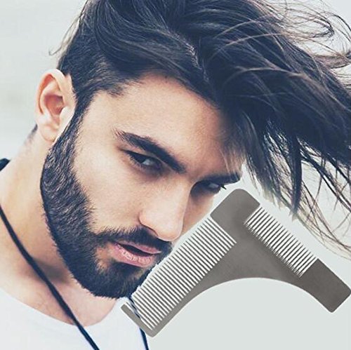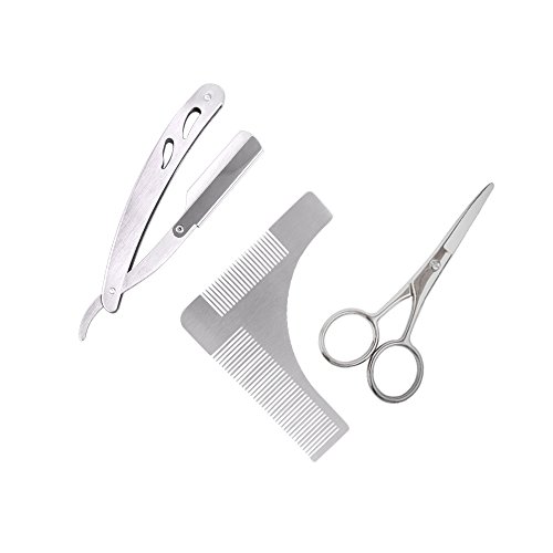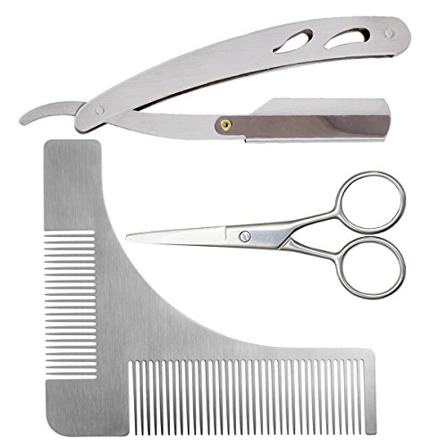 MILA- Stainless Steel Beard Trimming Tool,Mustache Shaping Symmetric Kit for Men, Including Styling Comb Template+ Professional Manual Shaver+ Stainless...