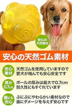愛犬が噛むものなので、素材には気を使いたいところ。このボールは天然ゴムを使用していますので、身体への心配もなくたくさん噛んでも安心です。