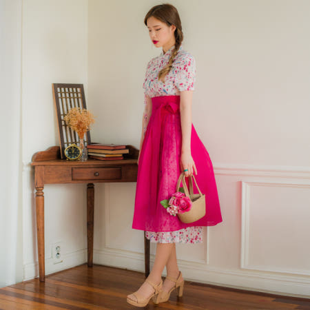 *여름 시즌에 맞춰 얇고 시원한 원단으로 제작되었어요. 여름에도 시원하게 꽃닮한복을 즐겨주세요 :)