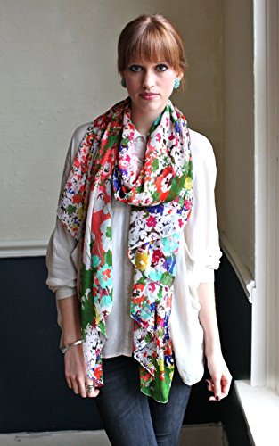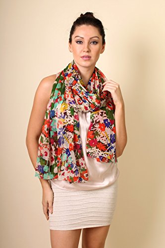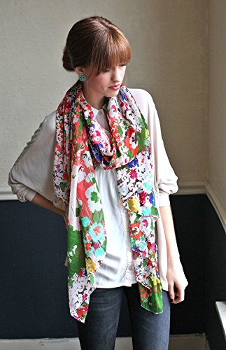 Binding : Apparel Product Description Special Sale. Limited time offer while supplies last. Flowing, soft and sheer chiffon scarf in lovely vibrant watercolor floral print, quite a stunner! Generously sized. Perfect to be used as a wrap. Cheerful hues are sure to brighten up any outfit. Base color has a very light beige tone to it which is the perfect background for the lovely floral print. Material: Premium quality Polyester chiffon (silky soft hand feel). Approx. 78" L x 42" W. Made with love by Anika Dali. Imported. Put in search keyword "Anika Dali" in Amazon search box to view more fabulous styles from Anika Dali. Related Keywords: Anika Dali, scarves, scarf, women's scarves, womens scarf, women's wraps, shawls, holiday gifts, unique holiday gifts, chiffon scarves, floral scarves, silk scarves, ladies carves, fashion wraps. 0