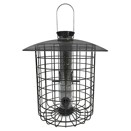 -. Feature : 10.5" diameter black powder coated steel wire cage with 1.5" openings and a smoke-tint shelter dome / Black 15" Sunflower/Mixed Seed feeder inside the cage is easy to remove for cleaning / 1 lb. capacity / Can be hung or pole mounted / Lifetime Warranty Against Squirrel Damage