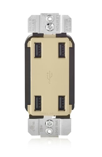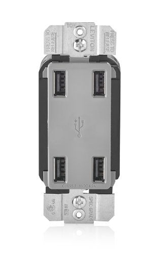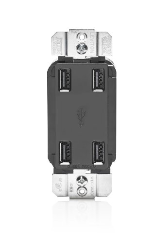 The Leviton USB4P offers 4 USB Charging Ports with a total of 4.2A of charging power. This device has the ability to charge up to four devices, including multiple tablets simultaneously. The USB Ports are Type A, 2.0 and are controlled by a microprocessor and smart chip that recognizes and optimizes the charging power of your device plugged in. This means you can spend less time charging your device and more time enjoying it! Our 4-Port USB Charger is ideal for charging tablets, smart and mobile phones, e-readers and much more.