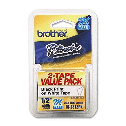 Brother Printer P-Touch M2312PK M Series Tape Cartridges for P-Touch Labelers, 1/2w, Black on White, 2/Pack (BRTM2312PK)