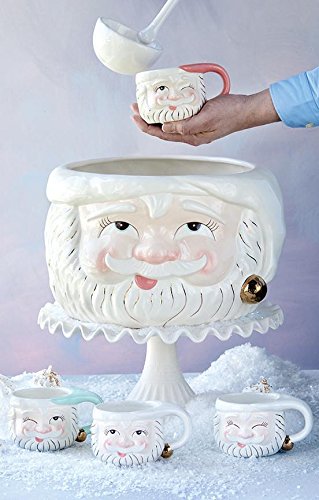 (Glitterville)/Kitchen Dining/Bar Tools Glasses/DIRECT FROM USA/Glitterville Papa Noel Ceramic Christmas Punch Bowl and 4 Mug 5 pc. Set