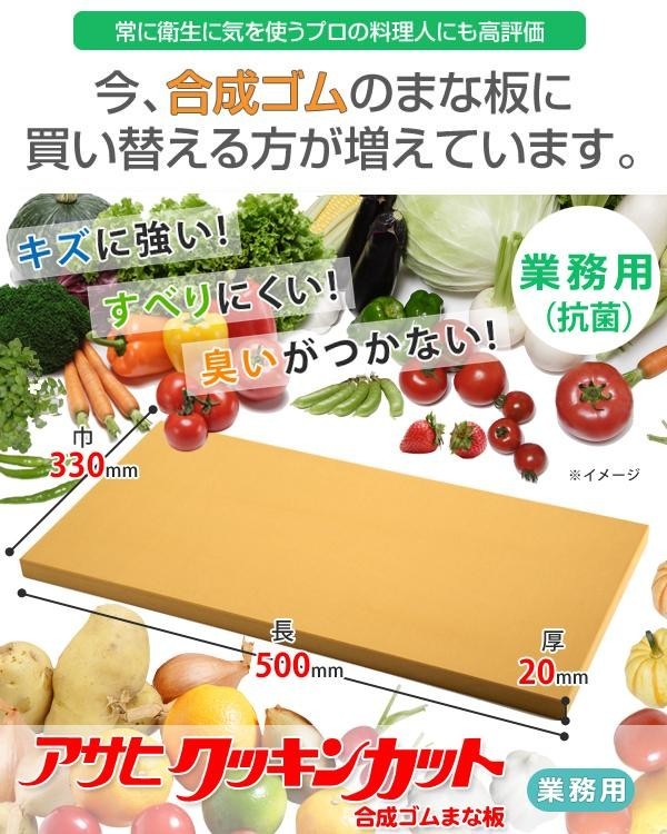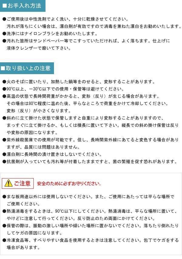 | 合成ゴムまな板は木肌に近い感触と、従来品にない清潔さを合わせもつまな板です。合成ゴムを素材としているので、吸水性がなくて水切れがよく、汚れがつきにくいので雑菌の繁殖を防ぎます。また水洗いの後、ふきんで軽く拭くだけで水が切れるので、手入れもとても簡単です。 |