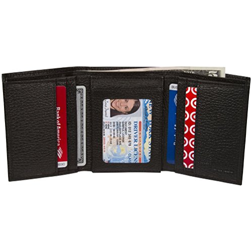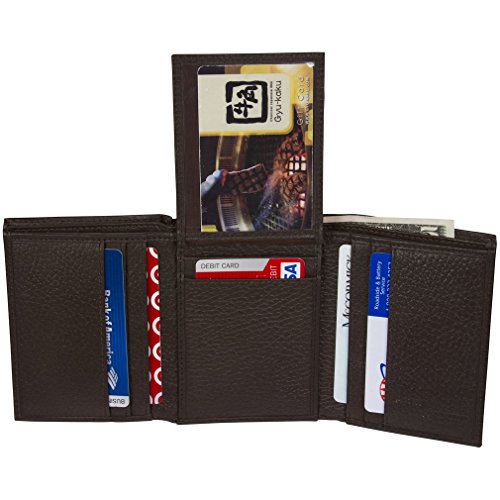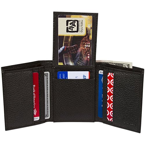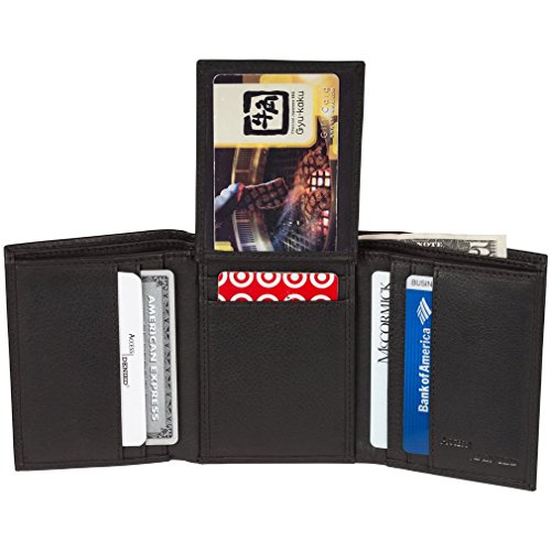 -. Feature : 9 RFID Secure Slots, 2 currency pockets, multifunction trifold wallet / RFID Identity Theft Protection in your wallet / Quick Access double sided flip ID window slots, convenient for travel / Wallet Folded Dimensions: 4.37 inches x 3.75 inche / Prevent Electronic Pick Pocketing, Protect your Credit and Debit card account