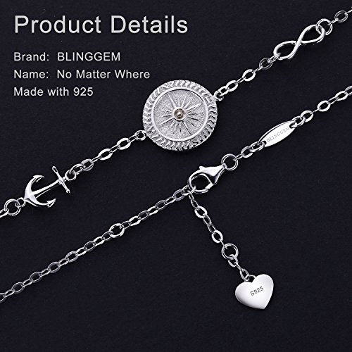 ☸Sterling Silver Compass Bracelet inspired by a compass rose, sometimes called a wind-rose. Everybody has the confused time then you need someone to guide you and lead you just like the compass. Sterling silver compass direction engravings charm display the orientation of the cardinal directions, symbolize the compass rose tells us directions and keep us from getting lost.