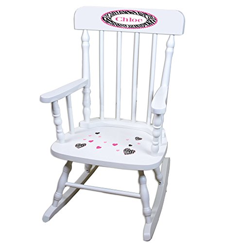 Studio : MyBambino Publisher : MyBambino Product Description Our MyBambino personalized groovy zebra white childrens rocking chair makes a wonderful toddler or baby gift. Sturdy contruction and beatiful design come together to form a tradional staple of any child's nursery or room. 0