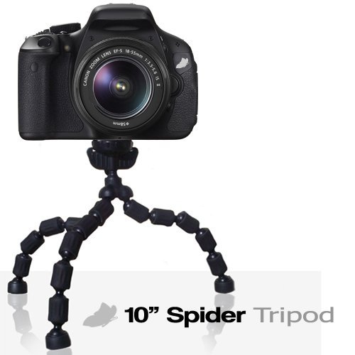 10-Inch Spider Flexible Tripod, Fleible to any angle / Rubber rings and foot grips / Holds camera to virtually any surface /Quick release plate / Safety plate lock