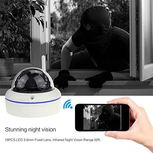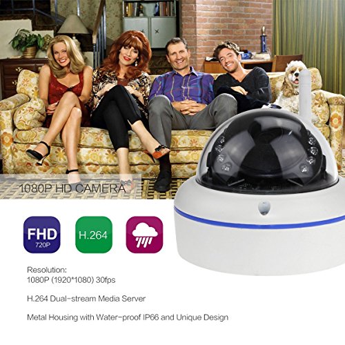 -. Feature : 1080P(1920*1080) Maximum Frame Rate: 30fps, H.264 Main Profile & Dual Stream. Compatible With Onvif Version 2.4 or Below Security Devices. / Wi-Fi and Ethernet Connecting: Wi-Fi, 802.11b/g/n, 150Mbps, Wi-Fi Range approx. 50-60ft. Supports WEP,WPA,WPA2, Ethernet (10/100 Base-T),RJ-45 Connector, Support One Key WiFi Setting / Night Vision & Motion Detection: 18PCS LED 3.6mm Fixed Lens, Infrared Night Vision Range 50ft. Email and FTP alerts by text information. Built-in SD Card Slot, Max Support 62GB TF Card for Auto Recording.(NOt included memory cards, you need to buy it yourself) / Remote Control: Support Android & ios Smart Phone View In Anytime & Anywhere with Free App , Support Real Time View and Playback. Compatible with Windows /Linux PC / Motion Detection and Email & FTP Alarm, Video Blind. Support RTSP, Waterproof IP66 for Indoor and Outdoor. Guaranteed for Full Year Warranty After Purchase and Engineer On-line Technology Supporting,24 Hours Message Reply If You have Any Question.