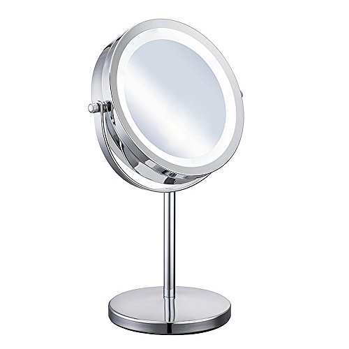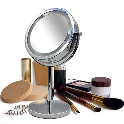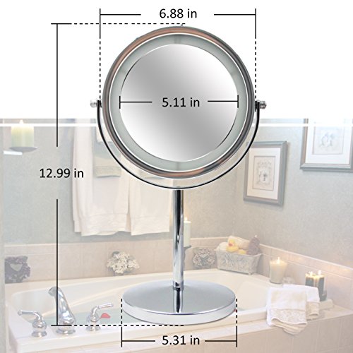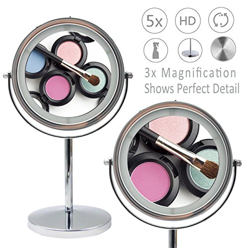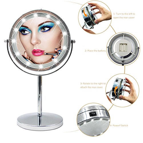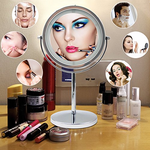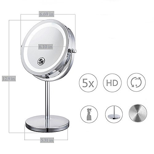 ★Specification ?Magnification: 5X ?Weight:2lb ?Size: 12.9*6.69*5.31In ?Mirror diameter:6.1In ?Overall height:12.9In ★Free Rotation ?360-degree rotation of the double-sided mirror, you can adjust to any angle for easy viewing. ★Built-in LED light bead design ?Magnified mirror Built-in LED lamp beads designed to reduce energy consumption and extend battery life, from the usual 3-hour battery life to 8 hours. ★High reflectivity ?Ultra-clear, high-quality glass backed by high-purity aluminum coating provides superior reflectivity and clarity. ?The surface 5 times the magnification of the mirror to achieve the ultimate perfection, when you makeup process can face the ratio of five times the magnification without distortion. ★Simple and User-Friendly Design ?Stylish iron-carbon alloy skeleton to make your makeup mirror durable and not rust. ?Silver alloy appearance not only when the mirror can also be a small night light, both good-looking and durable. ?Beautiful side of the mirror design, inspired by the traditional Chinese style cheongsam, reflects the Oriental women's body curve, ?fully excavated the cultural connotation of the nation, giving this makeup mirror is not the same spiritual content. ★Counterweight base anti-skid Weight base with EVA foam pad to avoid cutting the table even if the slope is also very stable. ★Package included ?1x makeup mirror(not included the battery) 0