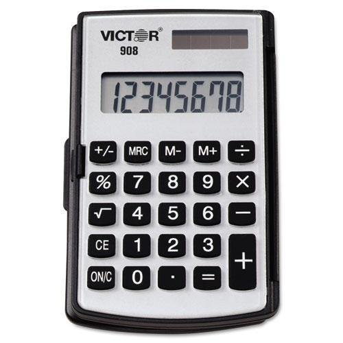 -. Feature : VICTOR 908 Portable Pocket/Handheld Calculator, 8-Digit LCD / Well-spaced rubber keys for comfort. Sized and powered for calculations anywhere. Protective double-hinged hard-snap cover for carry-with convenience.