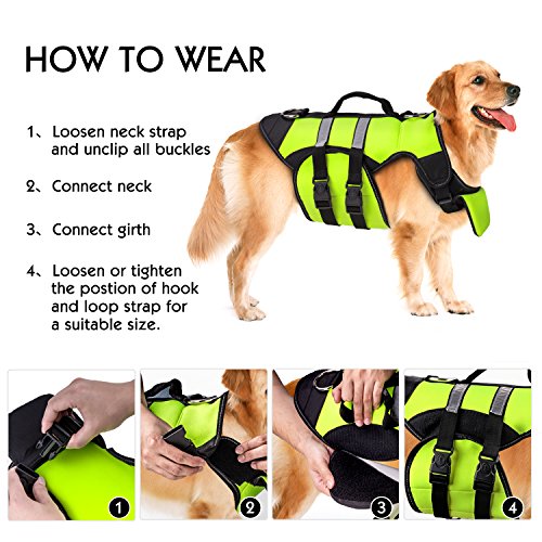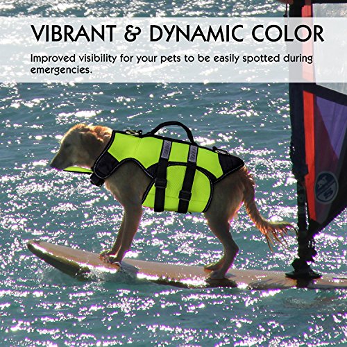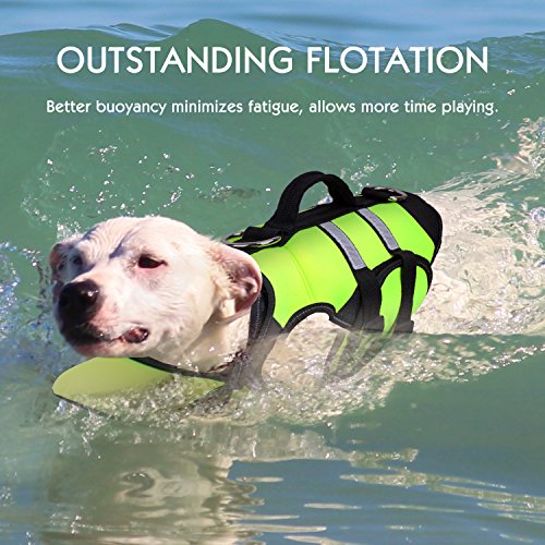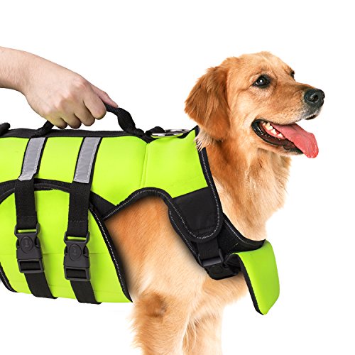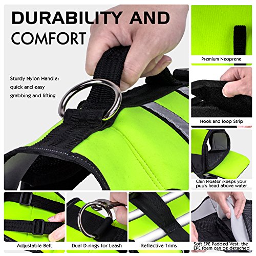 -. Title : Pawaboo Dog Life Jacket, Duarable Adjustable Soft Padded Reflective Neoprene Pet Life Saver Vest Coat Life Preserver with Handle on TOP for Dog or Cat, Large Size, Fluorescence Green and Black