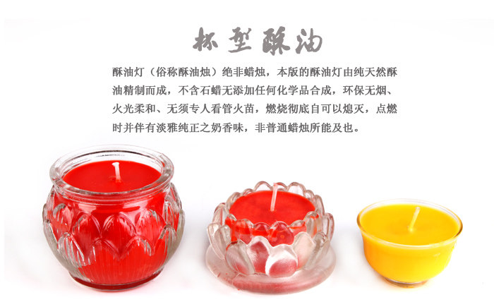 By pure plant edible oils and refined flame stability persistencecombustion emits light when the natural butter flavor. Yizhanzhan SuYouDeng convey the devout believers unlimited and prayer.