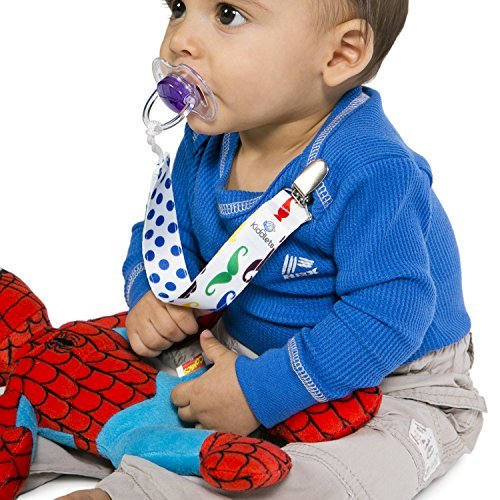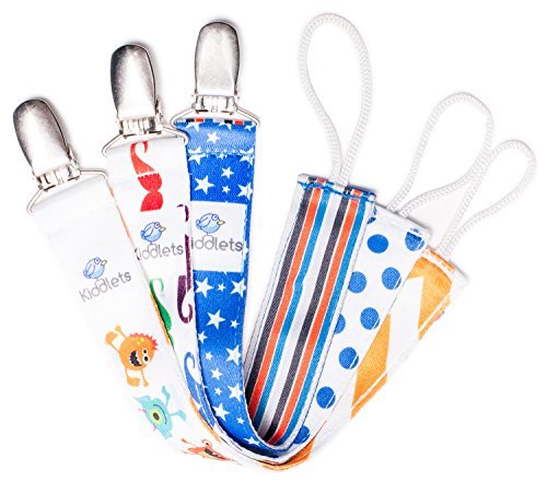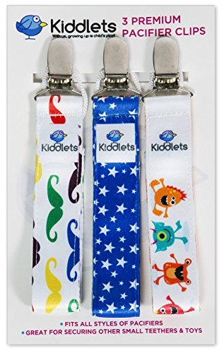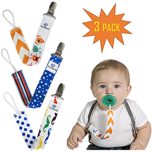 -. Feature : ✔️ GERM PROTECTION - Protect your baby from germs by attaching the metal alligator clip to his clothes while the durable cord holds his binkie, which will eliminate it from being tossed to the floor. Certified to give you piece of mind because it keeps the pacifier away from potential germs and bacteria. AMAZON CUSTOMERS SAY "These are the best Pacifier Clips I've ever used". / ✔️ STRONG AND MACHINE WASHABLE - Have complete confidence that our strong stain resistant ribbons won't fade or even shrink. Our 100% polyester soothie ribbons come with reinforced stitching allowing them to look adorable for longer. They are also machine washable ensuring them to be bright and colorful every time. / ✔️ HYGIENICALLY SPEAKING- You can rest easy knowing that each of our pacifier holders will be safe and hygienic. The tether ribbons are approximately 8 inches long by 1-inch-wide with an attached durable cord to hold teethers, toys or plush animals. Our pacifier holders are BPA free, have no phthalates, latex, or lead ensuring your baby will be safe and healthy. / ✔️ STYLISH AND TRENDY - Enhance his awesomeness by adding one of our cute and adorable clips to his outfit. There are three different double-sided designs to choose from and will hold up against an active baby boy. We designed our soother clips to be fun and playful using vibrant and bright colors which will make your baby boy look dapper, stylish and trendy. / ✔️ BEST BABY GIFT EVER!! - Our unique paci clips and toy strap will make a perfect gift for your little man at the party and watch the envious mothers gather round. They are an absolute necessity for every new mom, but they are also adorable, cute and fun too, so make fashion statement and add them to the gift registry! Try them 100% RISK FREE- Trust the Kiddlets name and become a happy customer by purchasing your own Baby Boy Pacifier Clip Set today!!