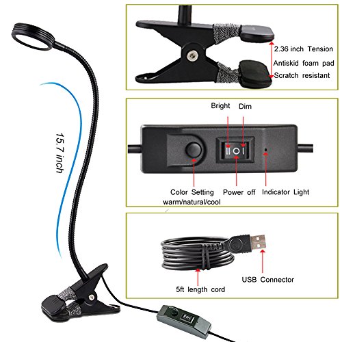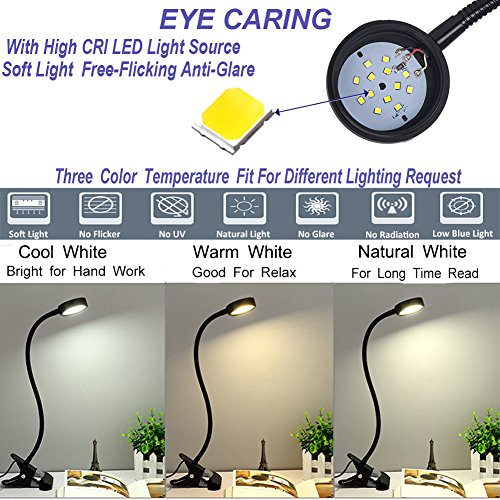 ✔ Upgraded eye protection LED desk clip lamp soft,natural&free-flicker lighting.3 color temperature(warm,natural,daylight) and 2 level brightness for setting,Total 6 lighting modes to choose.