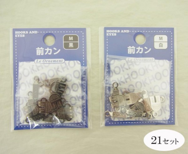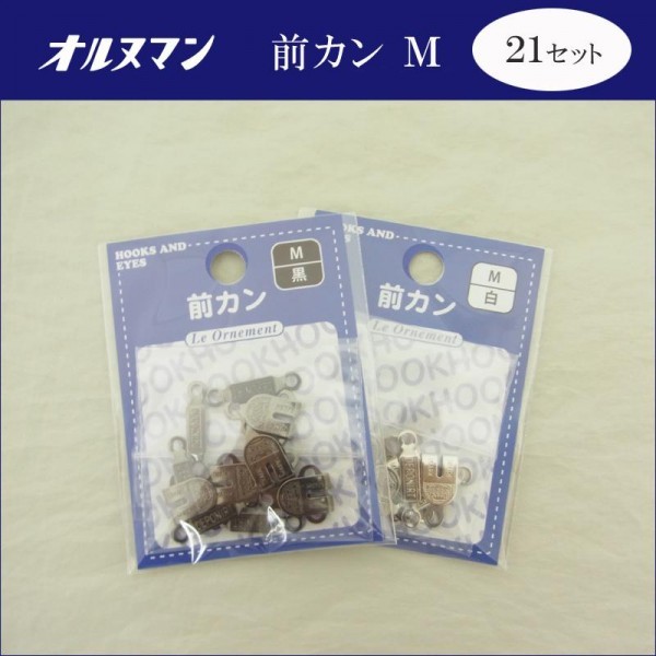 縫い付けタイプの前カンです。 製造国:日本 素材・材質:真鍮 セット内容:5個入×21P ※サプライヤー直送品  ご注文後3~4営業日後の出荷となります【商品名】オルヌマン 前カン M 5個入×21 白