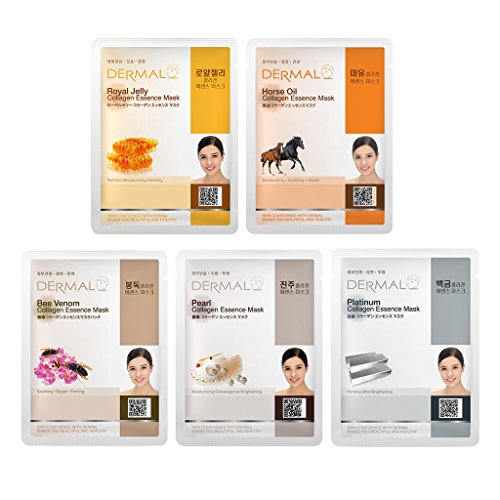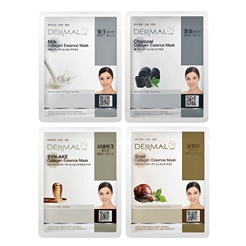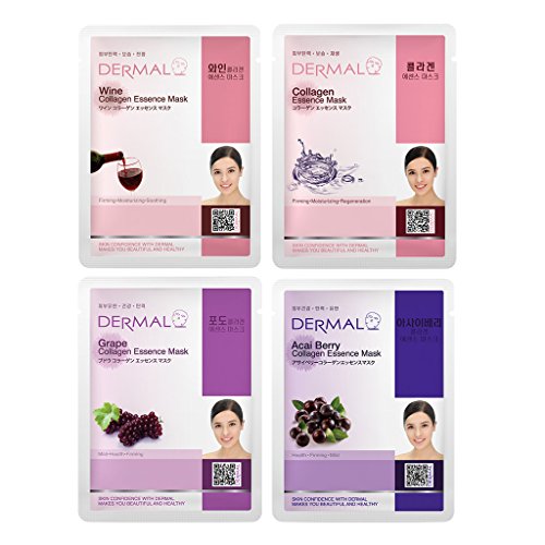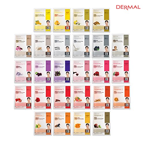 DERMAL Collagen Essence Full Face Facial Mask Sheet 26 Yellow & Red Combo Pack - Skin Nourishing, Elasticity