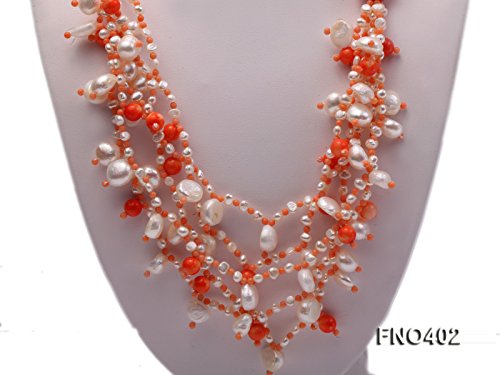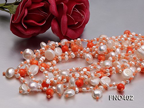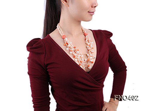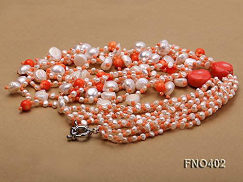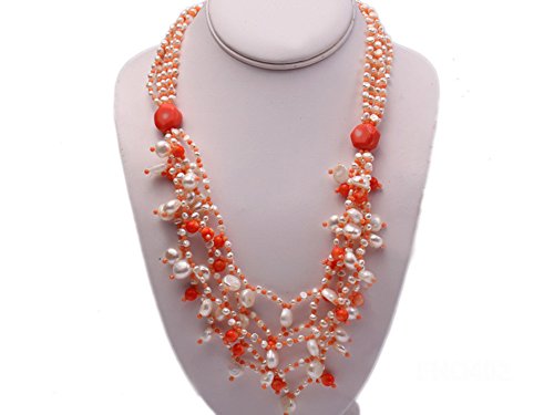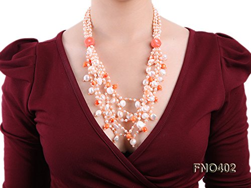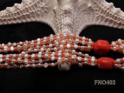 Description *This charming necklace is made up of freshwater pearls and it is alternated with coral beads.