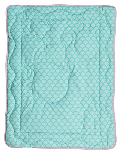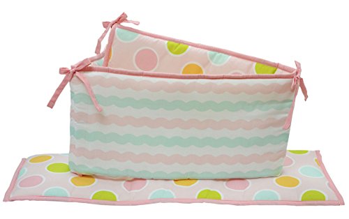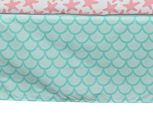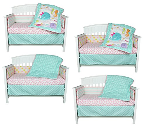 -. Feature : Four piece set includes: sealife themed quilt, blue scalloped dust ruffle, pink starfish fitted sheet, and all-around crib bumper / Quilt measures 42 by 33 inches and features adorable sea creatures in a pink aquatic setting, making this your baby girl's favorite tummy time blanket / Crib sheet is 100% cotton and fits a standard size 52 by 28 inch crib mattress; all-around elastic assures a safe and secure fit every time / Beautiful scallop design crib skirt enhances the aquatic theme of this collection; features a 10 inch drop / 4 piece reversible bumper features a wavy zig zag pattern on one side, reversing to multi-colored water bubbles on a pink background