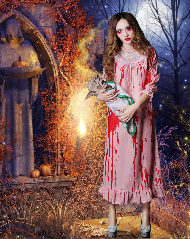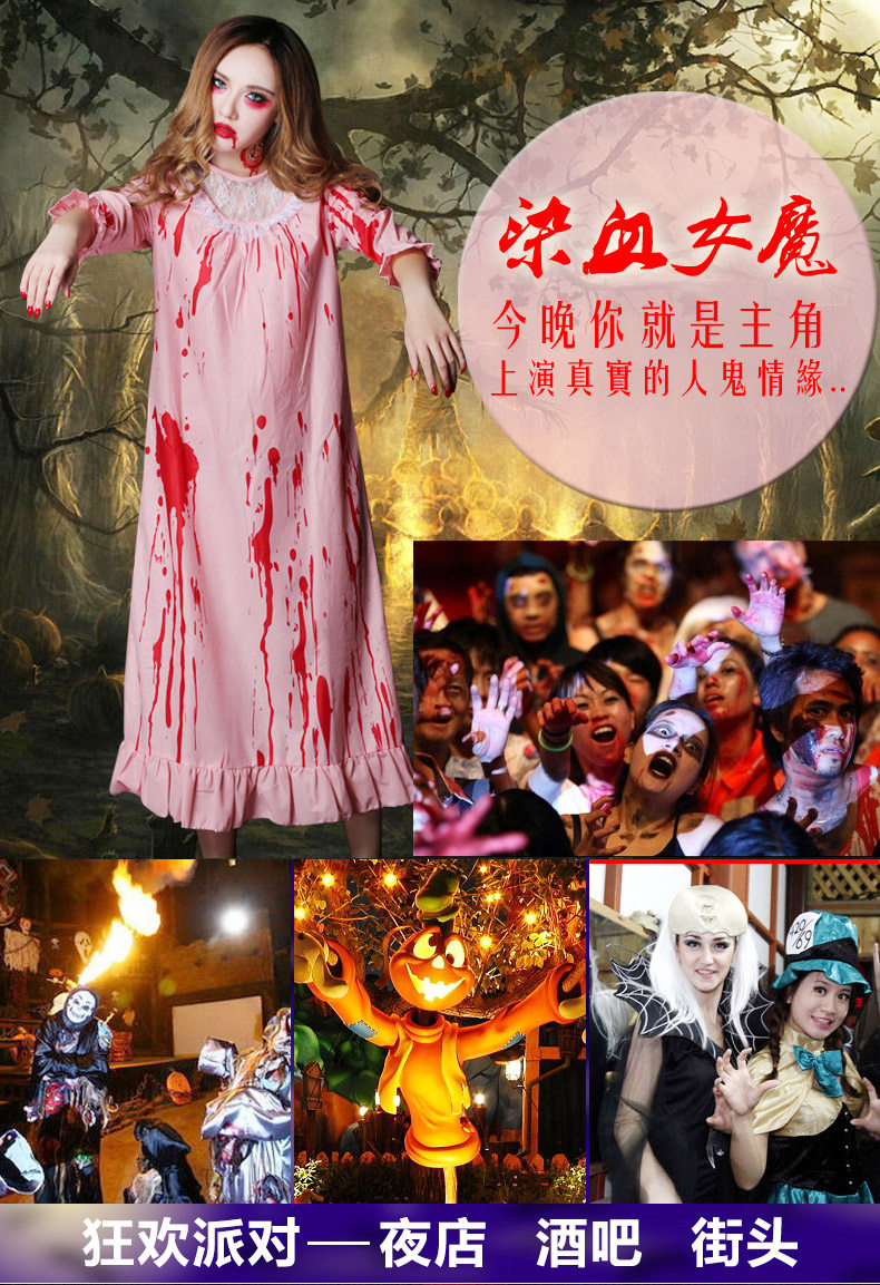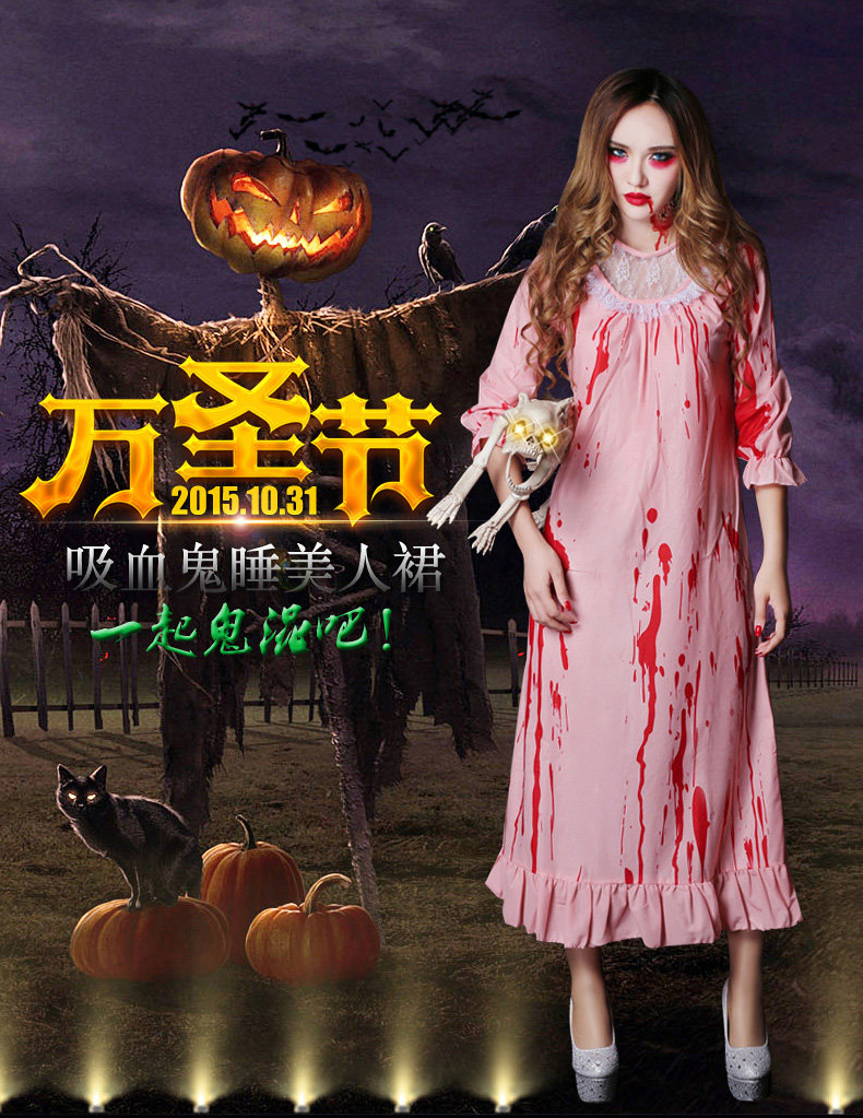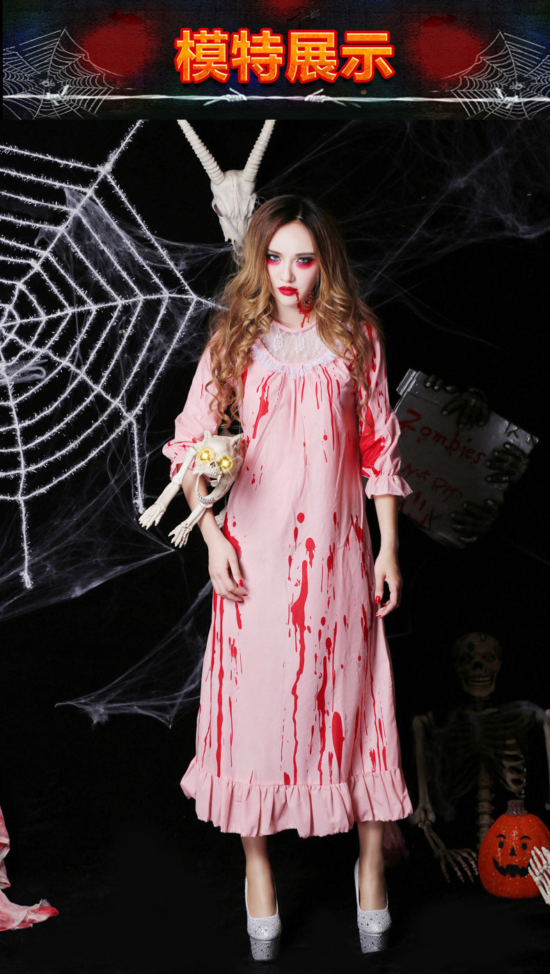 万圣节服装角色扮演cosplay女鬼恐怖血腥僵尸护士染血睡衣睡美人