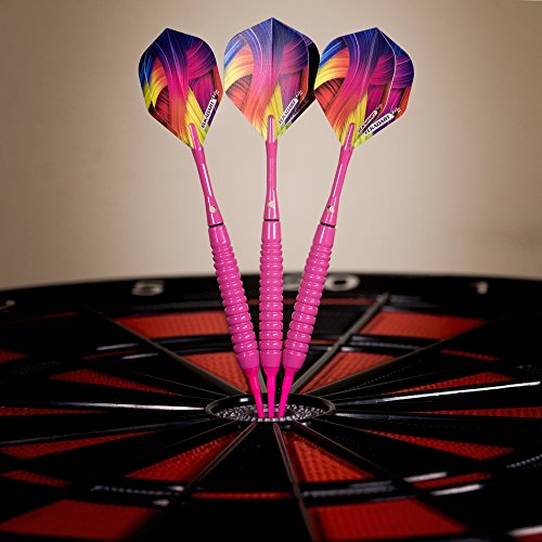 -. Feature : Designed with high quality, color coated brass barrels which offer exceptional balance and styling in a slim profile / Each barrel has strategically placed knurled bands, deep grooves and rings that make excellent gripping points and encourages consistent hand placement / Lightweight, aluminum shafts feature locking holes which allow for a tighter fitting that improves stability and greatly reduces the need to retighten during play / Features 2BA Tufflex Tips II soft tip dart points that have a reinforced cone, making them extremely strong and durable; Intended for use with electronic dartboards / Darts are fashionably stored and protected in the slim-profile, hard-shell case; Proudly designed, manufactured, assembled and packaged in England