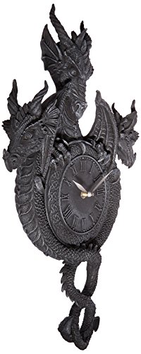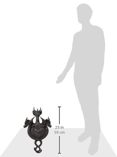 -. Feature : Dimensions: 14W x 3.5D x 22H in. / Plastic and resin construction / Gray finish / 3 dragon heads surrounding clock / Roman numeral dial
