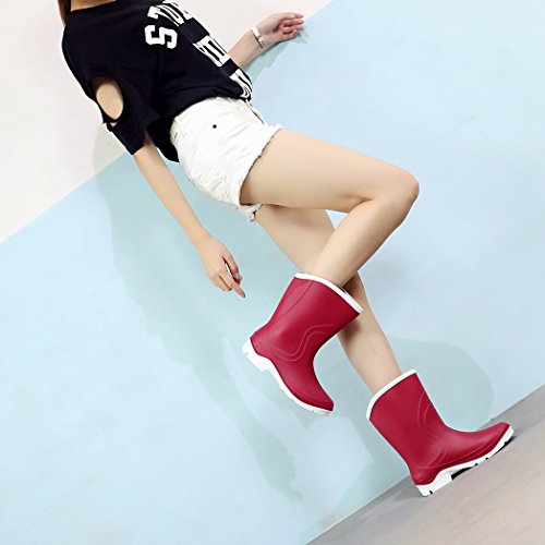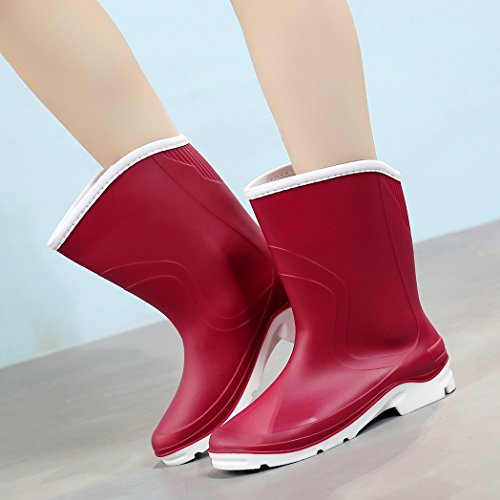 Binding : Apparel Product Description ♥Comfort and Value is Key: Ideal casual outdoor footwear for those cold winter days. High quality material for comfortable all day wear. Look great in the garden, doing any outdoor chores or even about town. The waterproof boot has a natural rubber construction, textile lining and a low block heel. ♥Product Detail: HEEL HEIGHT: 1.18" approx. Material:PVC (Man-made, 100% Polyvinyl Chloride)