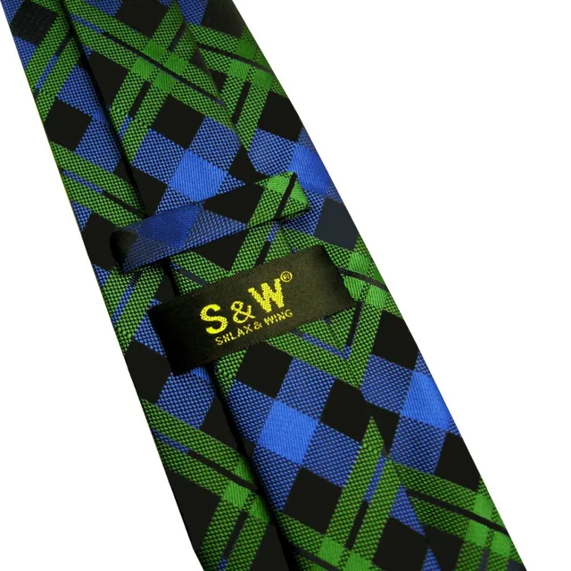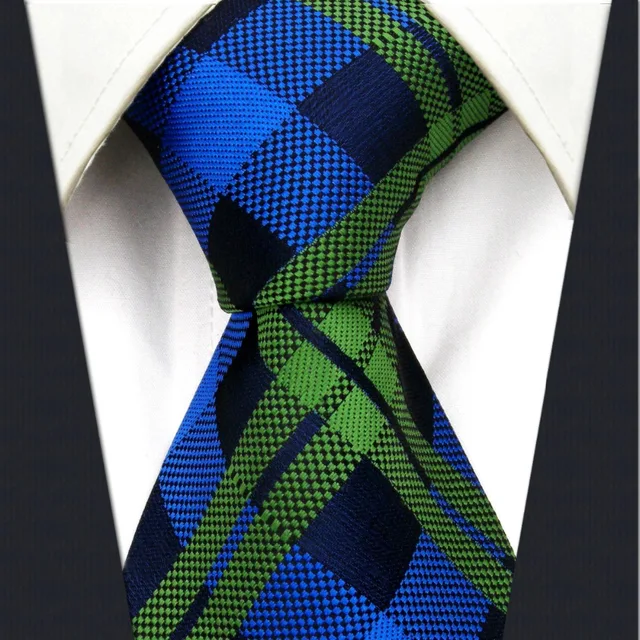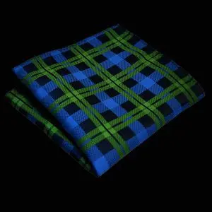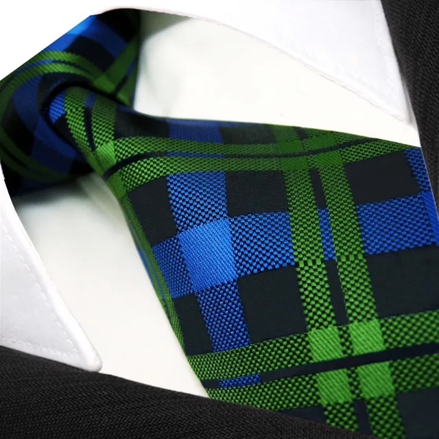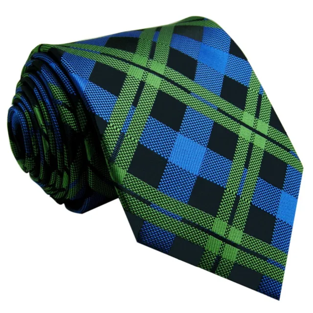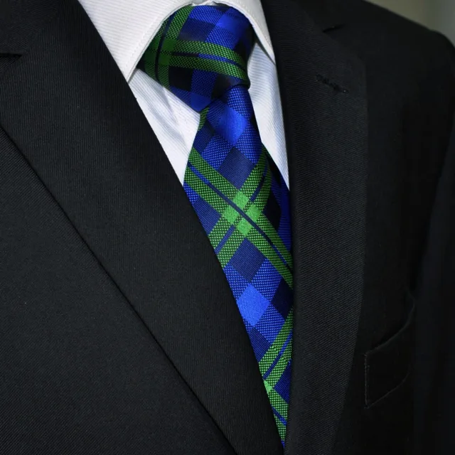| [해외]U19 남성 넥타이 일치하는 손수건 넥타이 여분의 긴 크기 63 "네이비 녹색 체크 실크 수제 웨딩 패션 클래식 브랜드 새로운 드레스 |