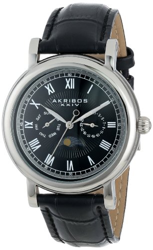 -. Title : Akribos XXIV Men's AK635SSB Retro Multifunction Silver-tone Stainless Steel Black Leather Strap Watch