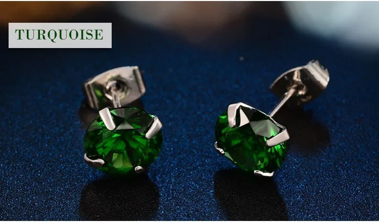 ladies sterling silver stud earrings:silver zircon stud earrings