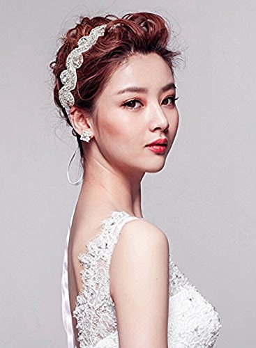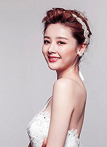 Elegent Luxury Handmade Crystal Rhinestone Jewelry Beads Bridal Wedding Evening Pageants Proms Birthday Christmas Gift Headband Satin Ribbon Hiarband Headwrap Hair Band Accessory White