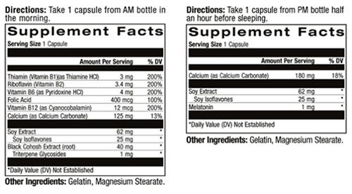 Studio : Natrol Publisher : Natrol Binding : Health and Beauty Product Description Dietary Supplement. With Soy, Calcium Black Cohosh. AM - Relieves hot flashes. Helps alleviate hot flashes and provides mood support. For: Hot flashes - Mood. PM - A good night's rest. Helps reduce night sweats and assists in getting a good night's rest 0