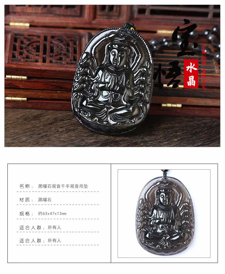天然冰种彩虹眼黑曜石千手观音菩萨吊坠生肖鼠本命佛守护神吊坠