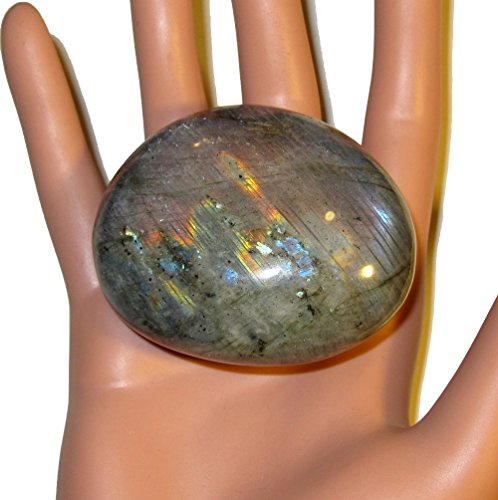 Your crystal is made from solid and pure labradorite of Madagascar. This piece is shiny smooth and sleek, in a large rounded palm stone formation. It contains breathtaking rainbows that shimmer in the light. It is polished, yet has natural lines and veins as Mother Earth intended. Receive the exact one featured when you order from Satin Crystals.