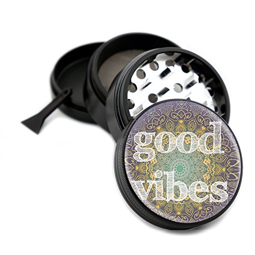 Good Vibes Mandala Grinder Black 4 Piece Grinders Premium Large Herb Grinder 2.5" 63mm - Easily Grind Herbs and Spices! (Good Vibes Mandala)