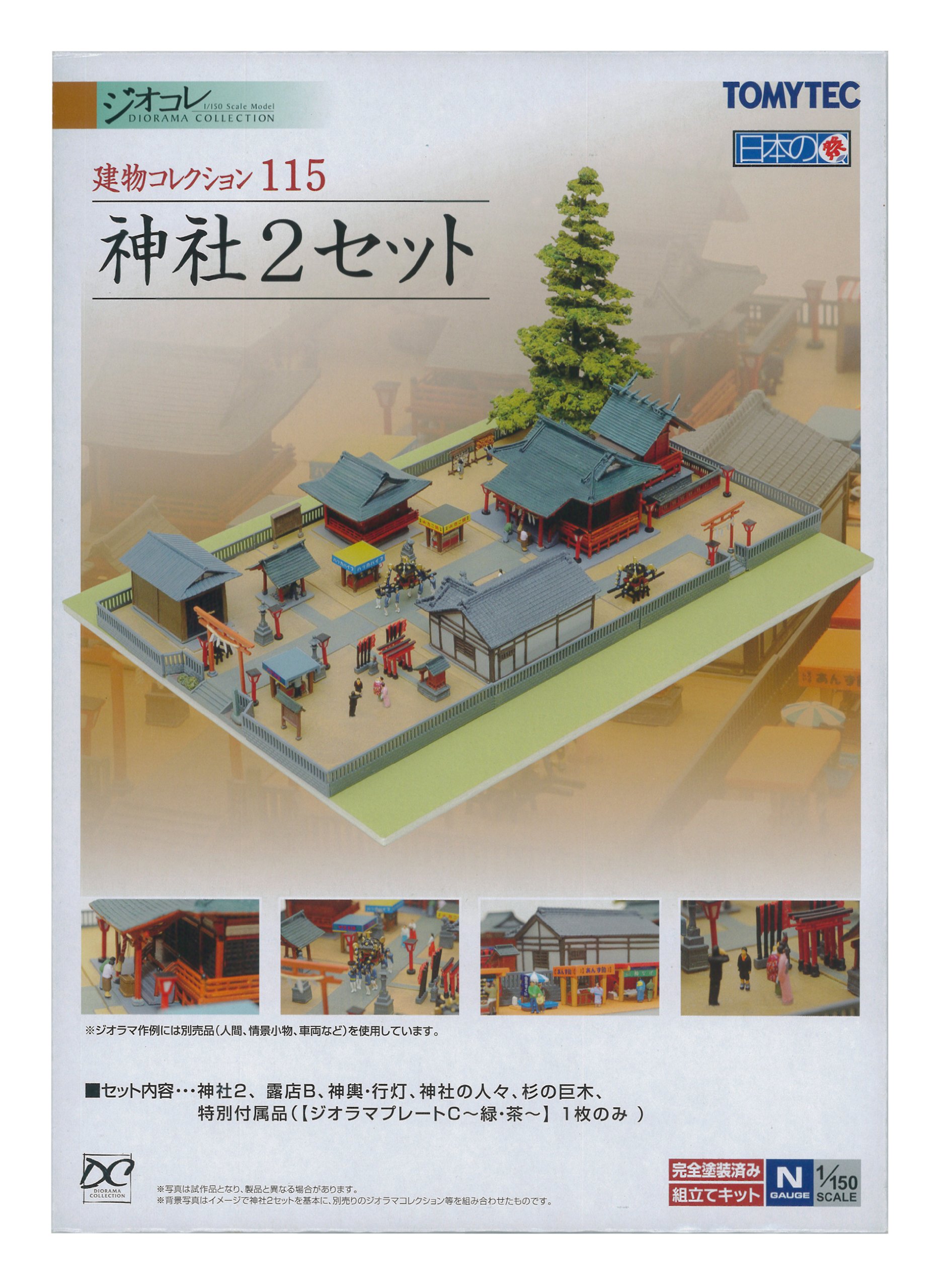 Shrine 2 (mentioned above), street vendor B, shrine mikoshi, lanterns, people of the shrine, cedar trees, diorama plate C (1 piece only) * Set scene accessories, trees, people * It is advantageous than single item purchase.