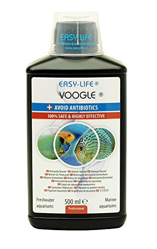 Dosierung & AnwendungVoogle hilft schnell bei allen Süß- und Meerwasserfischen. Hat eine allgemein heilsame Wirkung, erhöht die Widerstandskraft und unterstützt den natürlichen Genesungsprozess. Sicher für alle anderen Süß- und Meerwassertiere und den Biofilter.