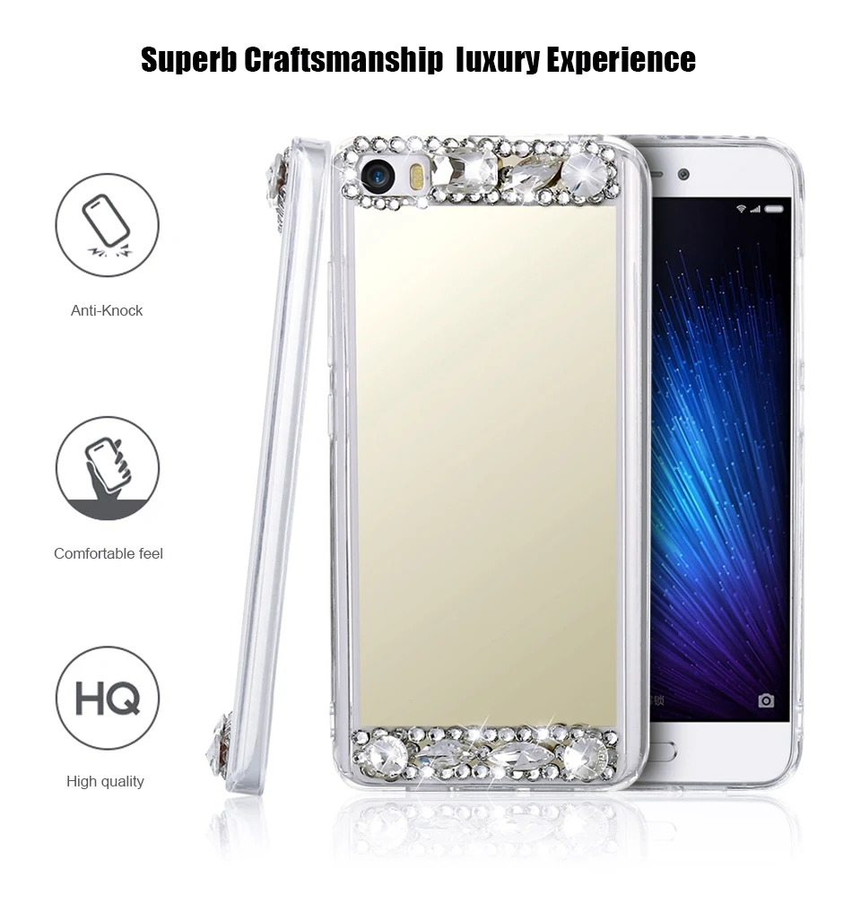 Features:Acrylic Mirror Diamond TPU Phone Case For Redmi Note 3 4 4X Note 4x