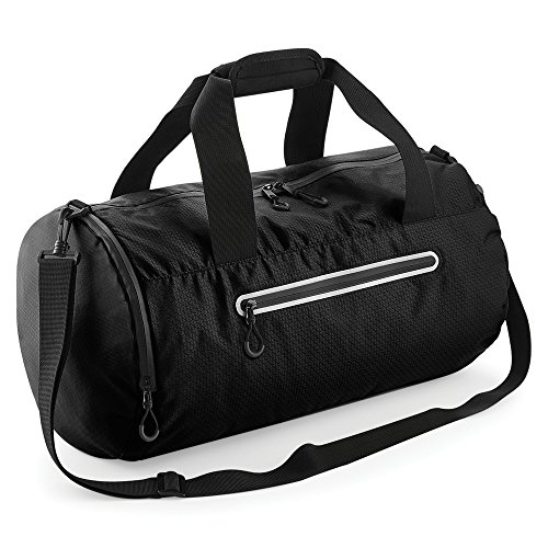 Product Description Shoulder strap holdall bag. Fully lined. Shoe compartment/wet pocket. Wipe clean interior. Reflective accents. Zippered front pocket. Zippered end pocket. External Mesh pocket. Detachable, adjustable shoulder strap. Padded hand grip. TearAway label for ease of rebranding. Fabric: 100% Polyester. Size: 19.5 x 11.5 x 11.5 inches. 0