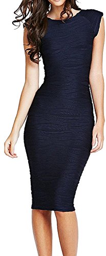 Product details: Pattern Type: Textured,Sleeve Length: Sleeveless,Color:Deep Blue,Dresses Length:Midi, Knee-Length,Style:Party,Office,Silhouette:Bodycon,Slim Fit